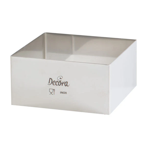 Med denna fyrkantiga bakring från Decora kan du skapa allt från eleganta moussetårtor till luftiga sockerkakor och stilrena semifreddos. Den är tillverkad i sömlöst rostfritt stål, vilket ger en jämn gräddning och en perfekt form utan att kakan putar över.