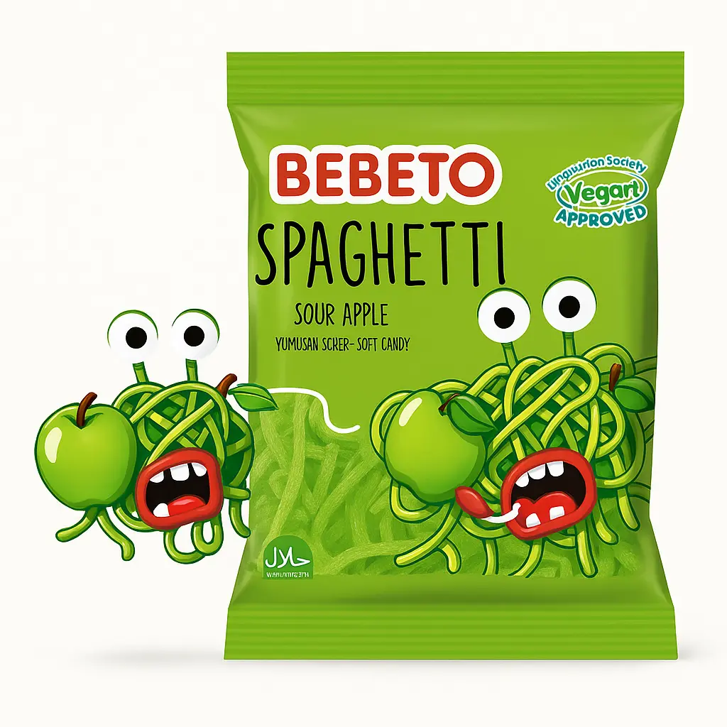 Utforska den sura och fruktiga smaken av Bebeto Spaghetti Sour Äpple! Dessa läckra godisspaghetti erbjuder en perfekt kombination av surhet och äpplesmak som kommer att tillfredsställa dina smaklökar. Njut av den spännande textur och smakupplevelse med varje tugga. Beställ dina Bebeto Spaghetti Sour Äpple idag och ge dig själv en smakupplevelse som kommer att få dig att längta efter mer!
