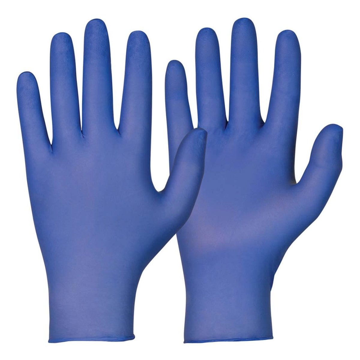 Blå engångshandske i starkt och mjukt puderfritt nitrilgummi.