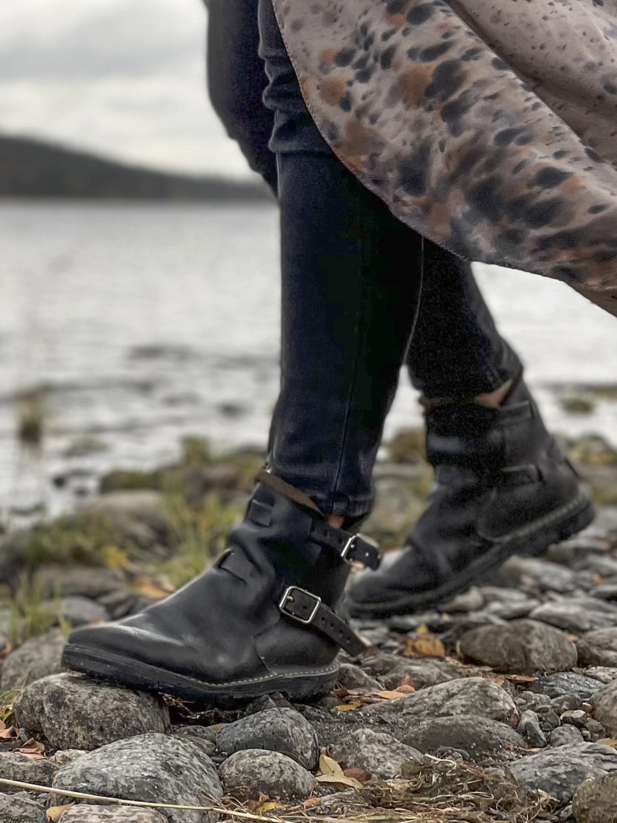 Bäst blir bootsen om din tå nuddar skons näsa vid första provning. Efter några dagar har den töjt sig. Det ska naturligtvis inte göra ont! Vi rekommenderar att du bär dina boots i en ren miljö åtminstone några timmar – för att få en indikation på rätt passform och känsla.