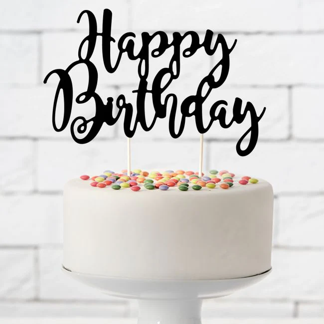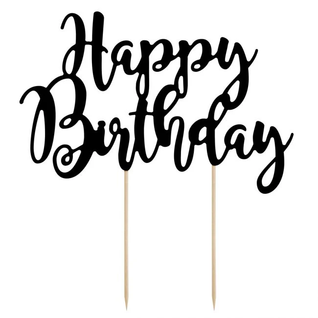 Cake topper Happy Birthday Svart