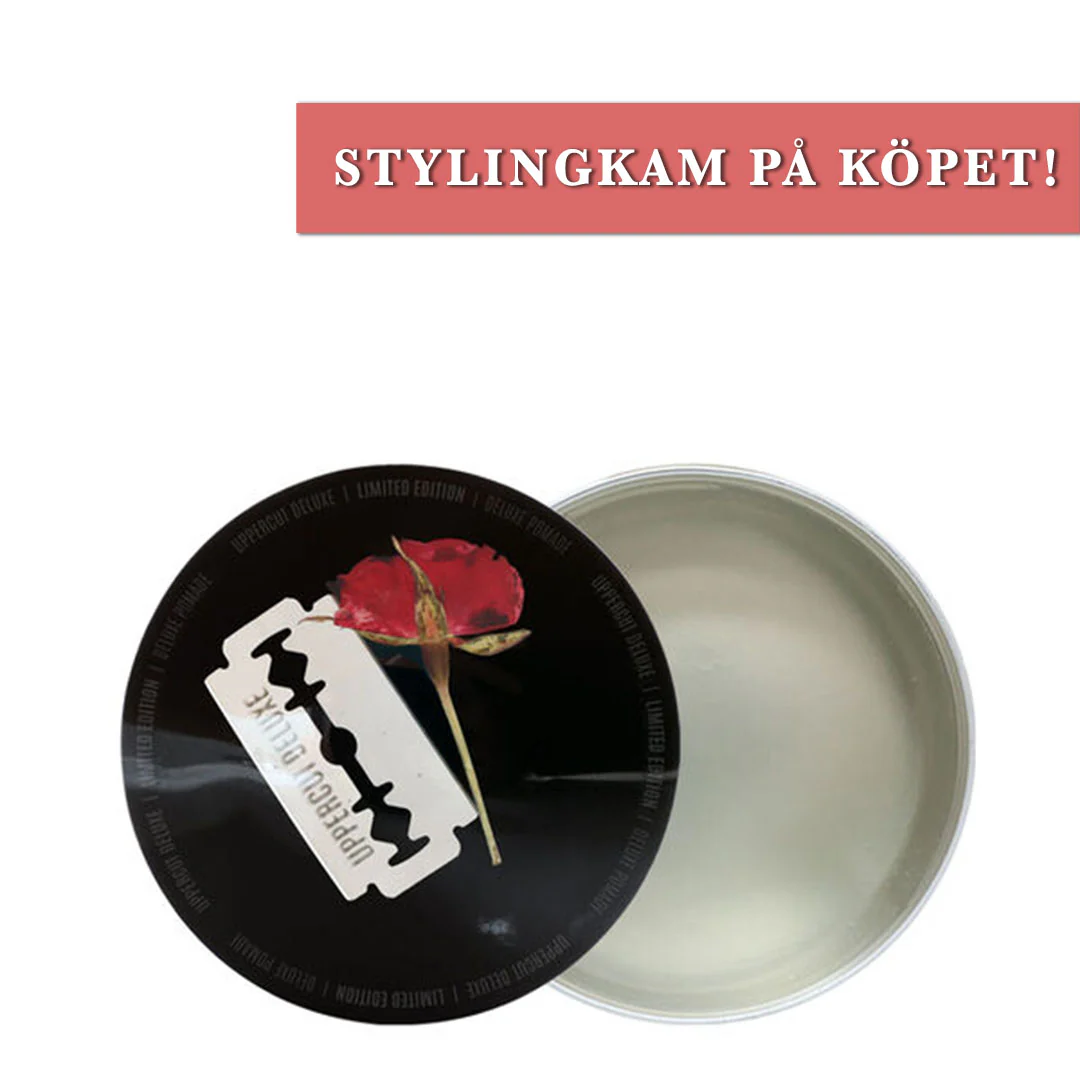 Uppercut Deluxe Resin & Rose Deluxe Pomade är en limiterad utgåva av den klassiska Deluxe Pomade, nu med en genomskinlig formula som speglar det eleganta hartslocket. Pomadan har en exklusiv och subtil rosdoft – utan en antydan av mormors byrålåda.