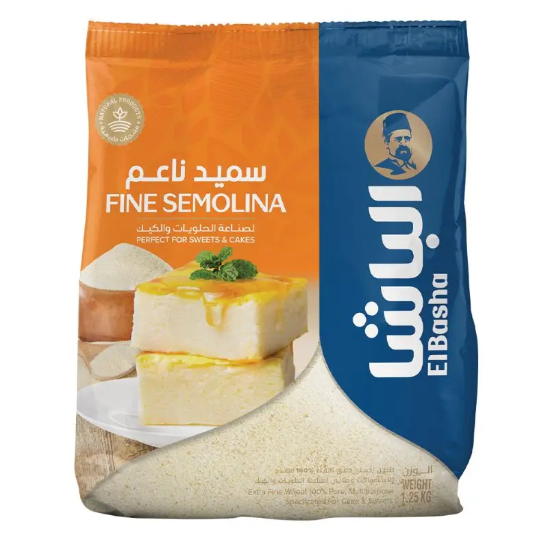 Fina mannagryn är små partiklar av vete som har malts och torkats till ett fint pulver. Tillverkad i Jordanien.