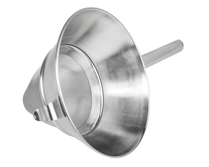 - Denna chinoissil är av rostfritt 18/10 stål, har ett kraftigt handtag och ett fint nät.