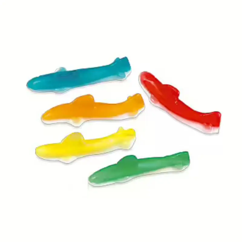 Glukossirap, socker, vatten, majsmjöl, ox gelatine, druvsocker, agar, surhetsreglerande medel (citronsyra), juice, grönsakers koncentrat (kiwi, äpple, svarta revor, citron, apelsin, morot, safflor), naturliga aromer (orange, citron, äpple, ananas, tutti frutti, björnbär, körsbär, vanilj, cola, revor, persika, aprikos), fett (palmolja), varmabau vax, bivax, färgämnen (E102, E129, E133, E171) kola sirap. Tillverkad i fabrik som också hanterar mjölkderivat