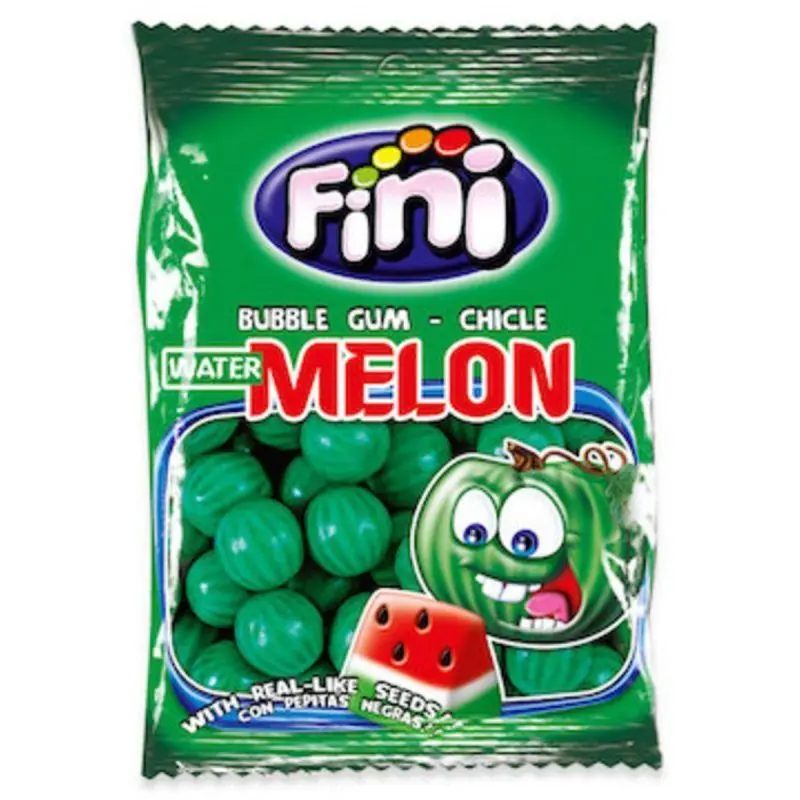 Ett lekfullt och fruktigt tuggummi för alla som älskar smaken av vattenmelon! Dessa tuggummin är utformade för att se ut som små vattenmeloner, med en grön utsida och röd insida som ger en autentisk vattenmelonkänsla. Med en söt och saftig smak som varar länge blir Fini Melon Tuggummi snabbt en favorit bland både barn och vuxna.