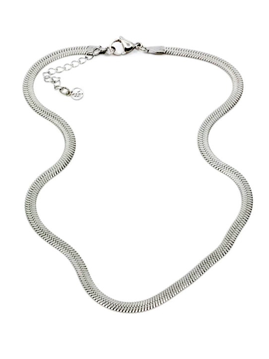 Halsband av rostfritt stål. Längd: 42cm + 5cm förlängningskedja.