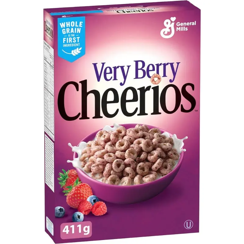 General Mills Very Berry Cheerios 411g Morgonen blir lite ljusare med Very Berry Cheerios Cereal. Med smaken av riktiga bär i varje tugga har Cheerios godhet blivit lite sötare. Smaken av jordgubbar, hallon, blåbär och andra naturliga smaker har lagts till Amerikas favorit-Os för en frukostflinga som är så bärgod att du kanske häller upp en skål varje morgon.