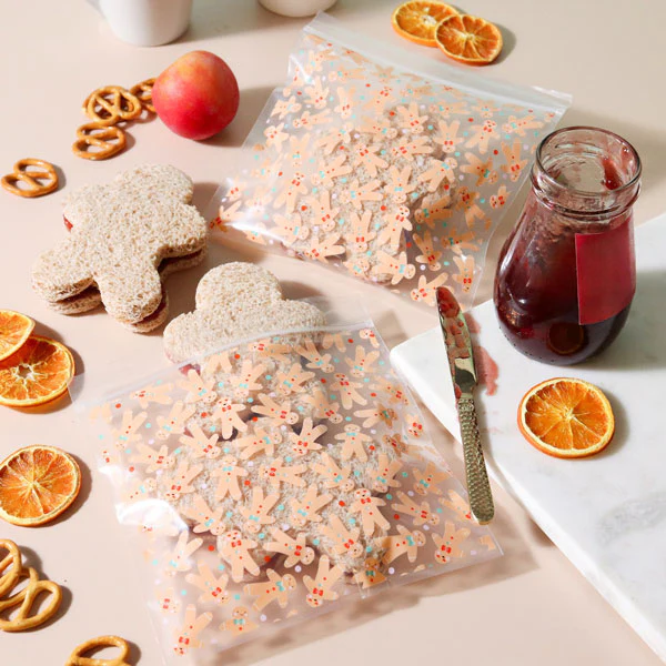 Fyll julen med pepparkaksdoftande kärlek! Dessa återförslutningsbara zip-påsar med pepparkaksgubbar från PME är som små lyckopåsar – perfekta för hembakade kakor, knäck, fudge eller söta små presenter. Påsarna har ett charmigt mönster av dansande pepparkaksgubbar med röda och turkosa detaljer som sprider julglädje direkt vid första ögonkastet.