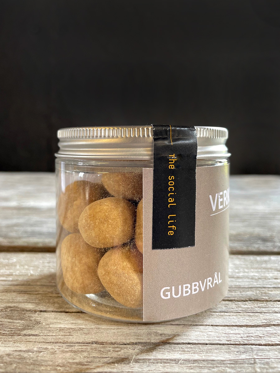 Smarrig salmiaklakrits med vit choklad. Fin burk att ge bort i present:-)