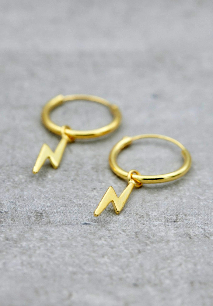 Små och trendiga örhängen, guldringar-hoops med en liten blixt. Kombinera gärna med fler örhängen för en personlig look. Handgjorda och tillverkade i äkta silver och pläterade med 18k Guld