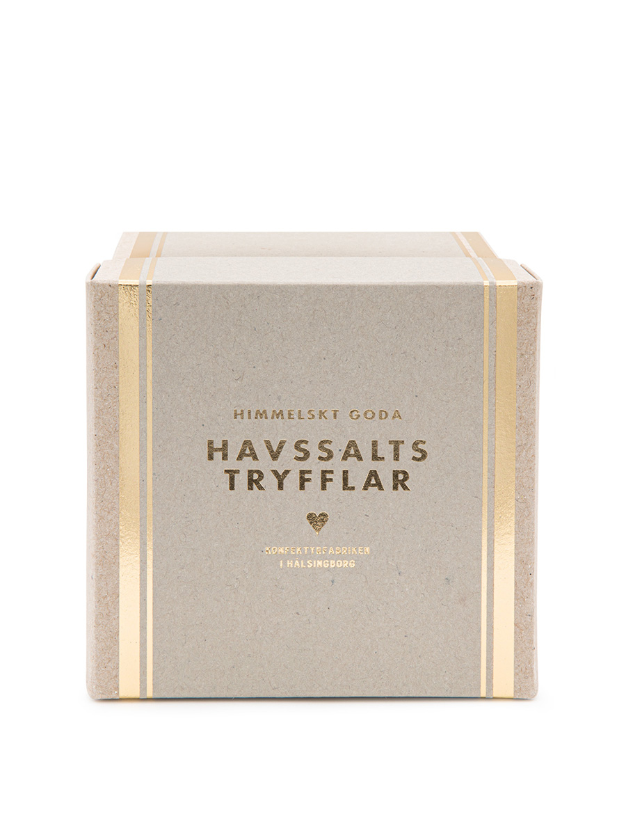 Tryffel med smak av havssalt. En godisbit i perfekt kombo av både sött och salt. Dessa smarriga tryfflar kommer förpackat i en utsökt snygg ask med lyxigt guldfärgade detaljer. En perfekt present att ge bort till tryffelälskaren som bara ÄLSKAR sött och salt i den perfekta mixen eller varför inte bara unna sig själv. Ta en paus, en tryffel och njut…♥