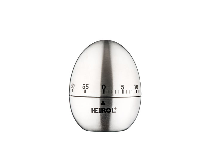 En klassisk äggklocka med timer från Heirol som ringer när maten är redo att avnjutas! När du ställer klockan vrider du medsols först till 60 minuter och därefter vrider du tillbaka till önskad tid. Tillverkad av rostfritt stål och plast. Klockan ringer när tiden är över. Max 60 minuter. Rengörs enkelt med fuktig trasa.