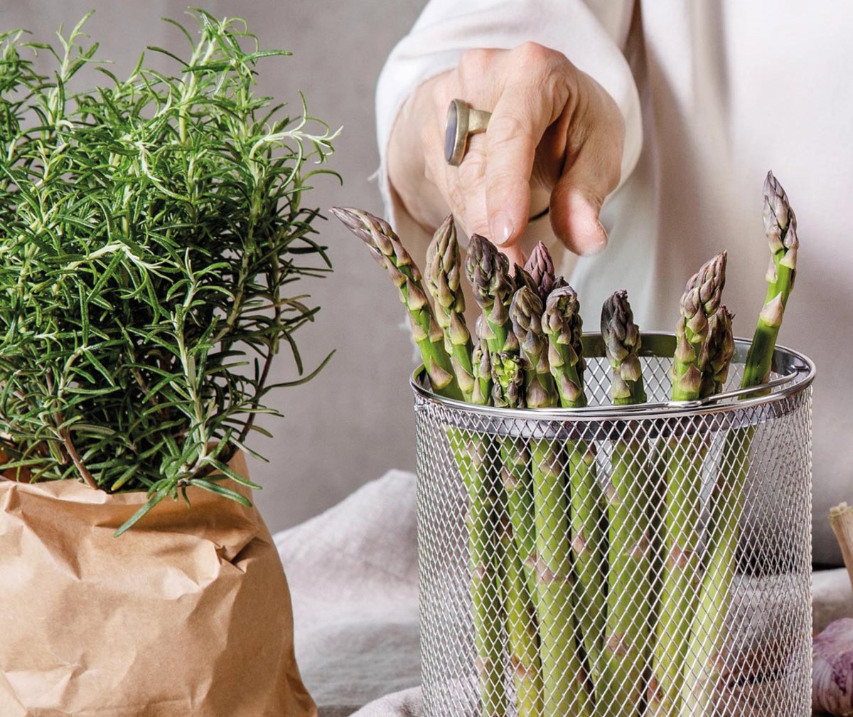 Njut av att tillaga och äta sparris med HEIROL 4 L sparrisgryta. Grytan kan även användas till spagetti eller som vinkyl. Skär bort den torra delen av sparrisen. Skala sparrisen med en skalare. Lägg sparrisen uppåt i korgen, och lägg korgen i kokande, lättsaltat vatten. Lämna sparrisknopparna ur vattnet.