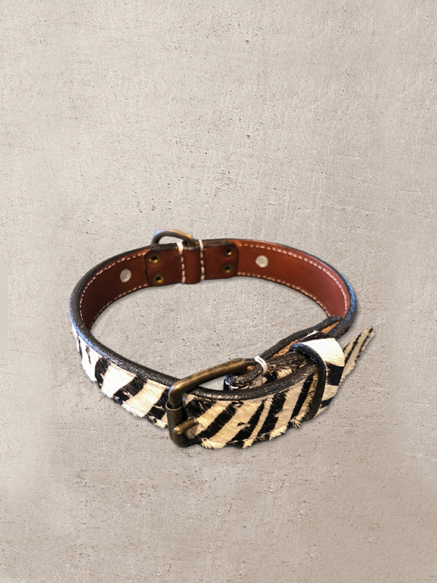 Hudhalsband i läder – Zebra