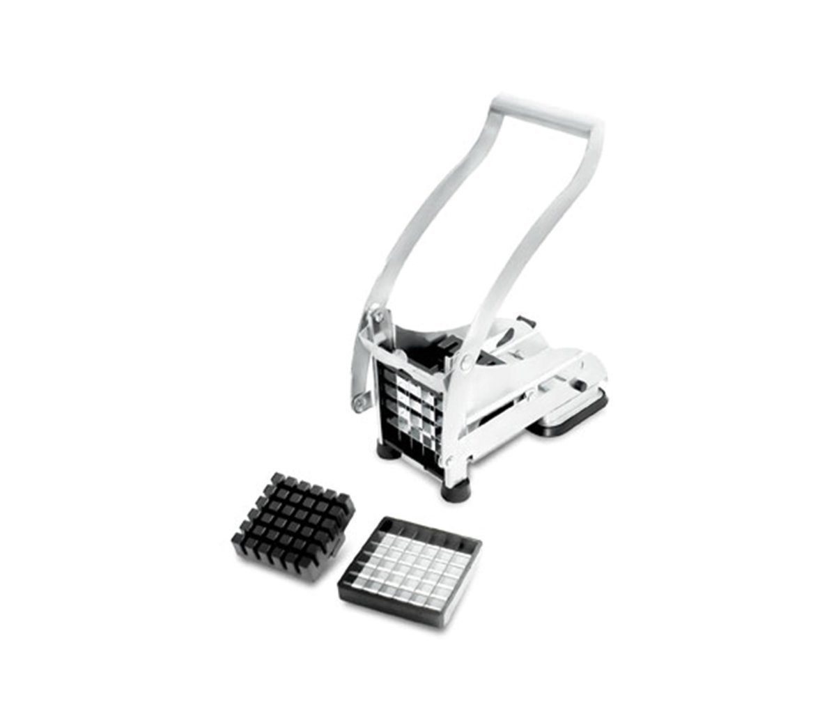 En robust Pommes maskin med suganordning i basen som gör att den står still på släta ytor. 3 st olika storlekar på knivar förljer med. Perfekt när man ska göra pommes, gurkstavar osv.