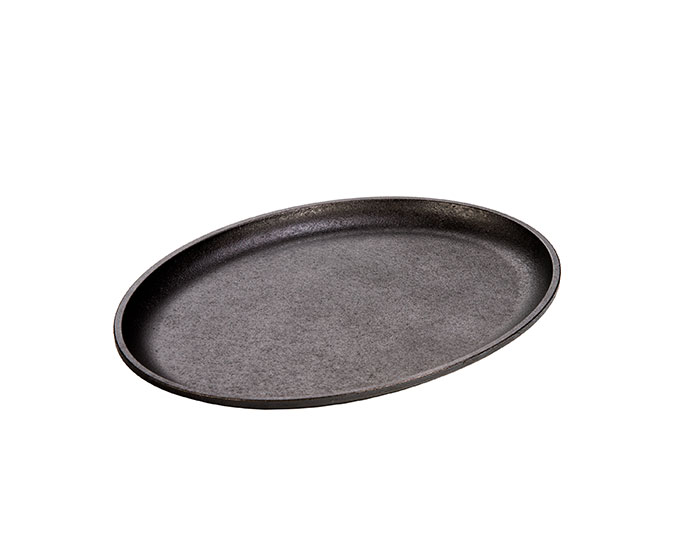 Oval gjutjärnsplatta för enkel tillagning I din grill. Servera direkt på bordet, bibehåller värmen och håller maten varm. Perfekt för gasgrill eller Big Green Egg, fungerar utmärkt på induktion och gasspisar. Inbränd med olja, instekning ej nödvändigt, du ar redo att laga mat direkt på samtliga av Lodge gjutjärnsprodukter.