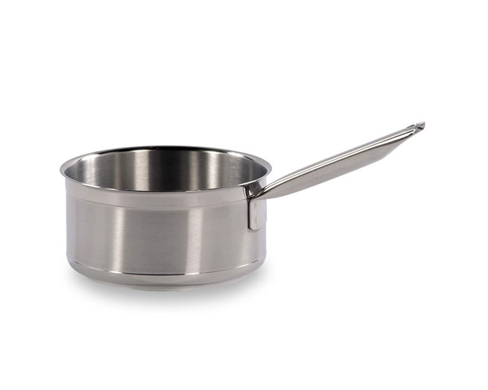 - Handtaget är svetsat intill kastrullen, utan nitar.