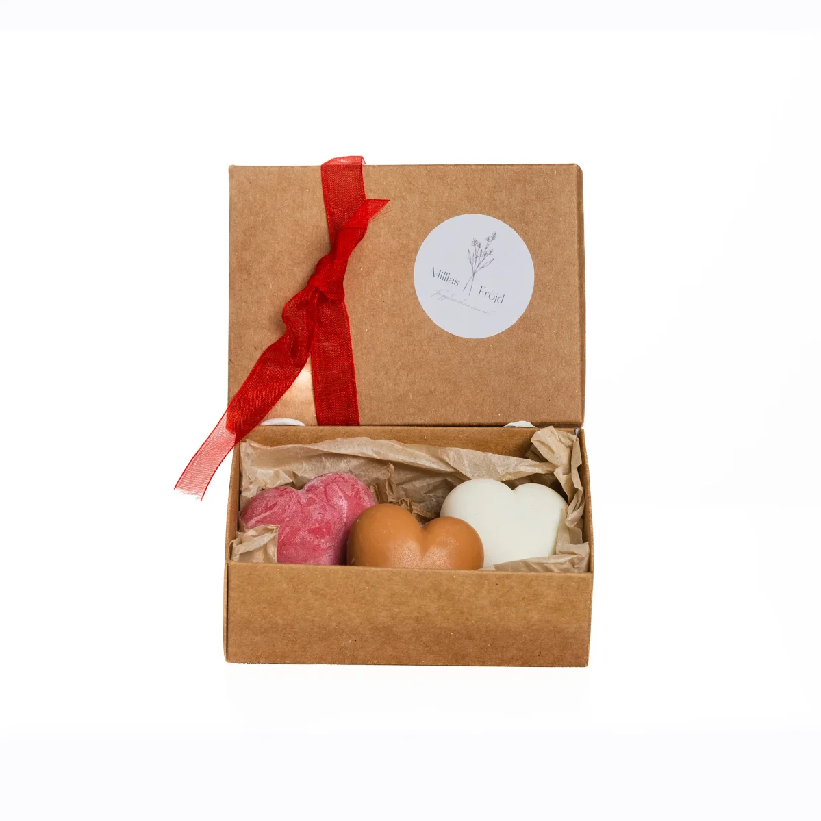I detta fina paket finner du tre av Millas Fröjds tvålar, Helga, Snö och Signe. Passar perfekt som julklapp eller som annan present. Tvålarna väger 30 g styck. Asken som tvålarna ligger i är vackert dekorerad med ett rött band.