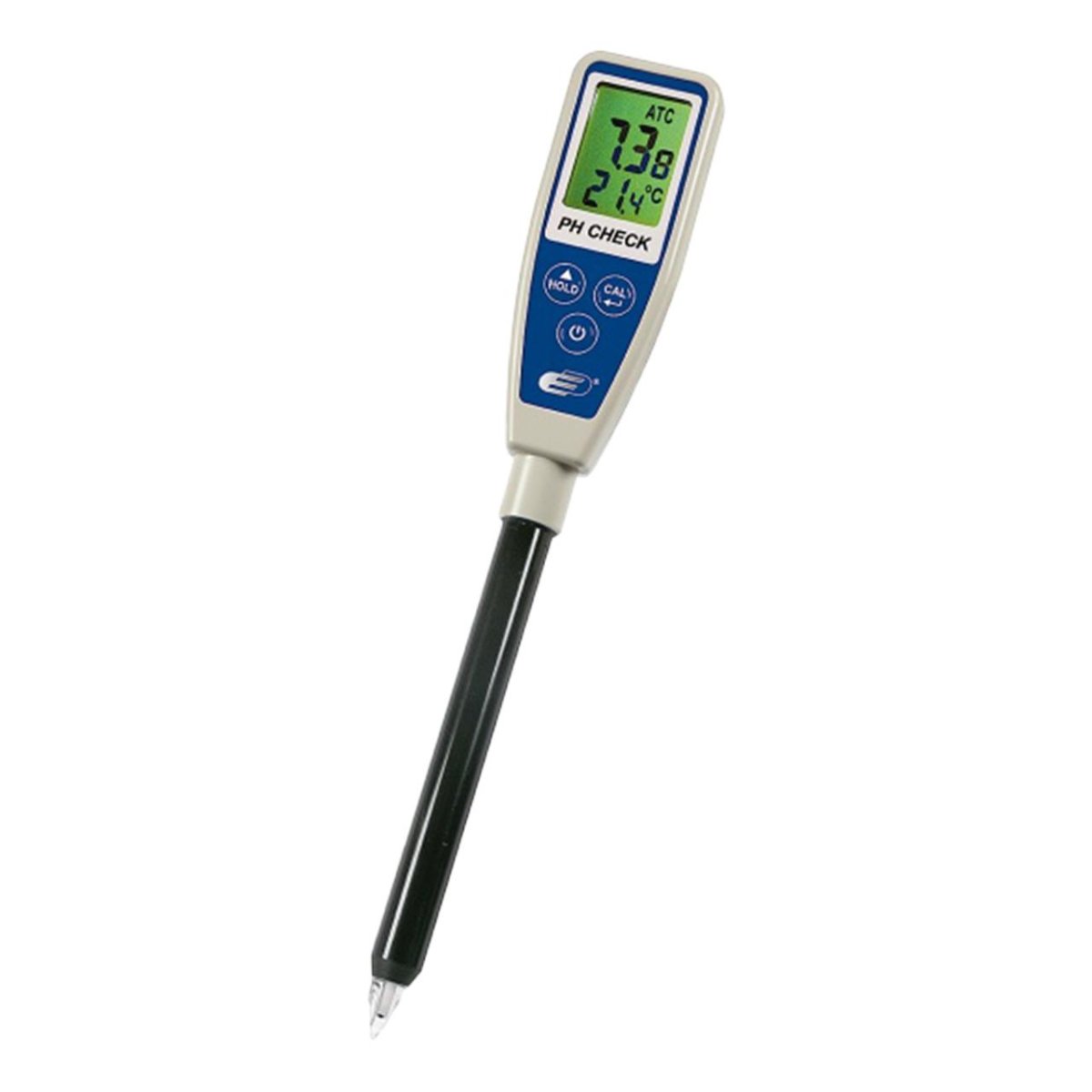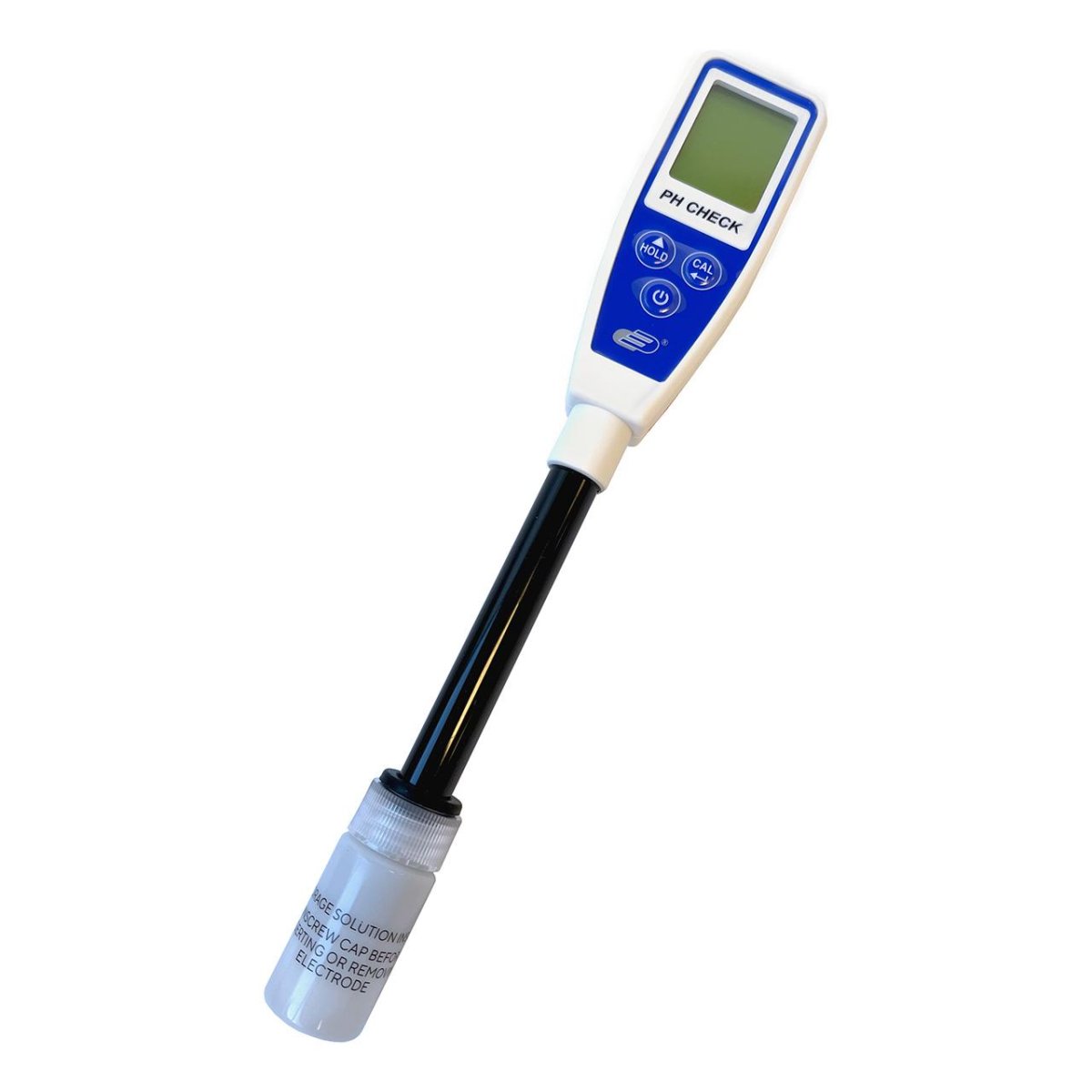 Digital display med två värderader för avläsning av både pH och temperatur samt indikator för låg batterinivå. Levereras med behållare med förvaringsvätska.
