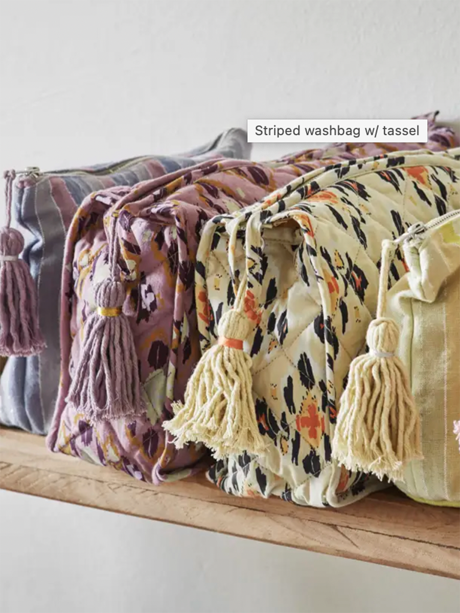 Quiltad necessär med handgjord dekorativ tofs av kvinnokollektivet Na Disha´s i New Delhi.