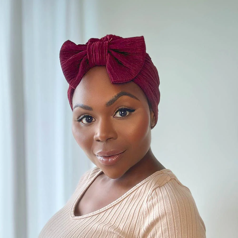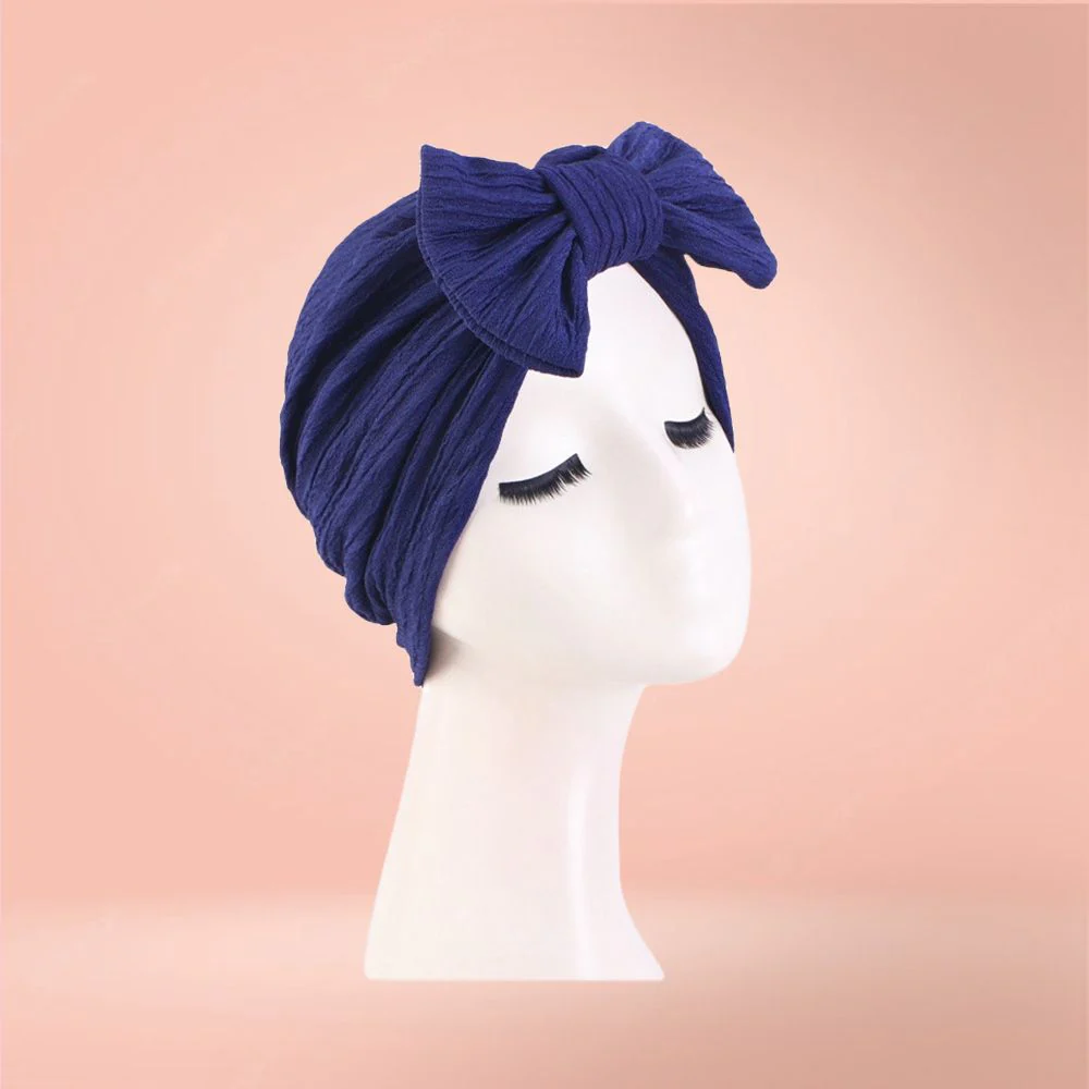 Rosett turbanen är gjord i ett mjukt material och har en rosett vid pannan, vilket ger en snygg och unik look. Användning av turban är ett bekvämare alternativ till peruk då den är mjukare och mer praktiskt att sätta på. Turbaner är idealiska för att dölja håravfall tex på grund av cancer eller alopeci då dom ger en full täckning av ditt huvud samtidigt som dom ger dig ett vackert, unikt utseende!
