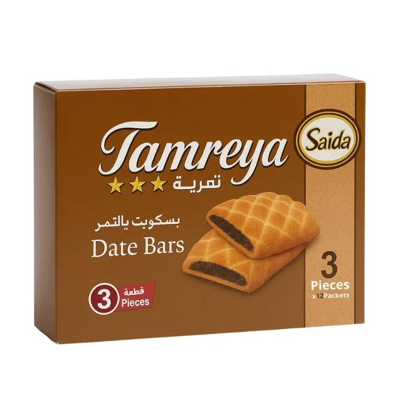 Njut av den utsökta smaken av SAIDA Tamreya Maamoul – saftiga och mjuka kakor fyllda med naturlig dadelmassa, perfekt balanserad med krispig kexstruktur. En omtyckt klassiker från Mellanöstern som passar utmärkt till te, kaffe eller som ett delikat sött inslag vid högtider.