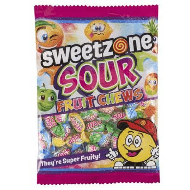 Supertuggigt godis sprängfyllt med syrlig fruktig smak. Sura smaker av grönt äpple, jordgubb och blå hallon
