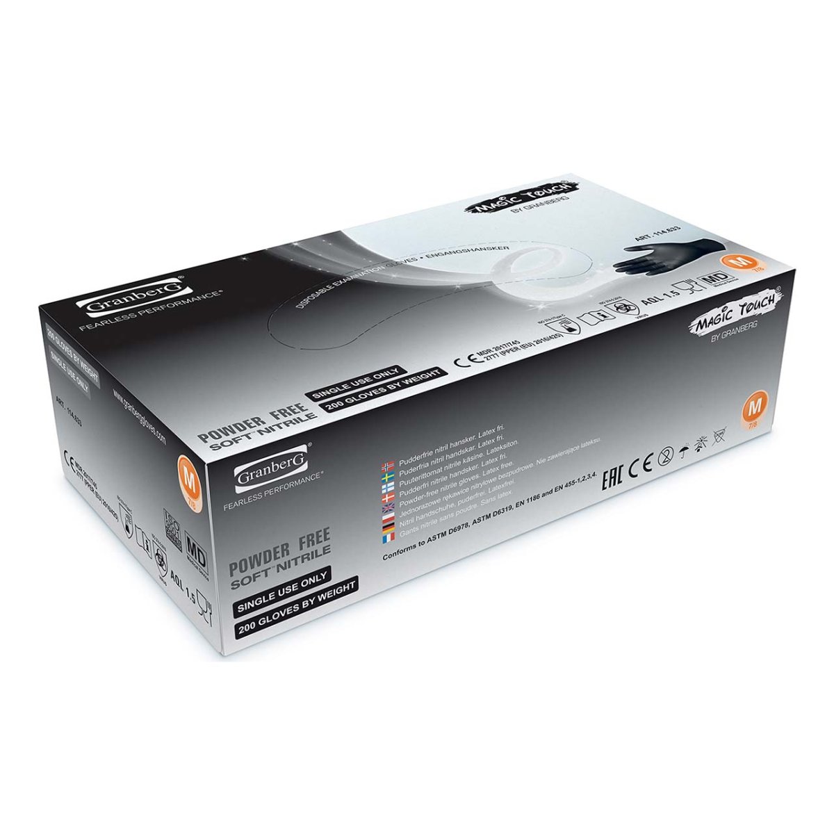 Godkänd för användning i direkt kontakt med alla typer av livsmedel samt medicinsk användning (EN 455). Testad enligt ASTM D6978-05 (Resistance of Medical Gloves to Permeation by Chemotherapy Drugs).